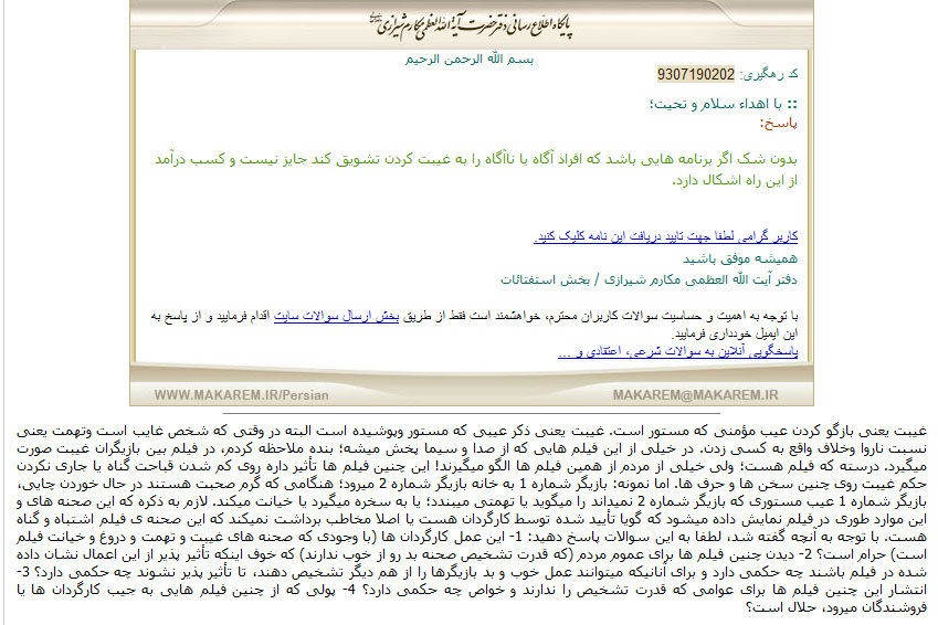 3- انتشار این چنین فیلم ها برای عوامی که قدرت تشخیص را ندارند و خواص چه حکمی دارد؟
